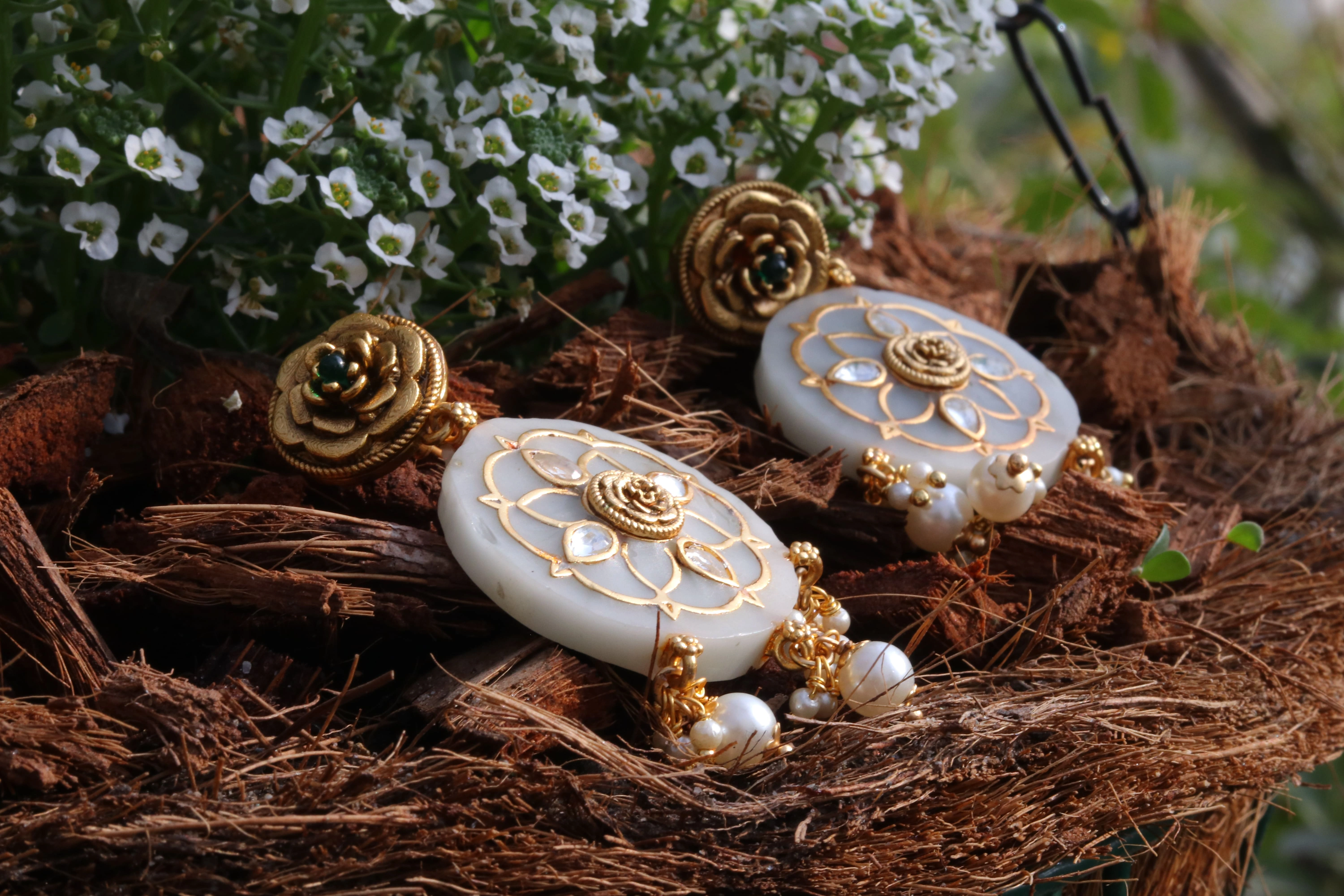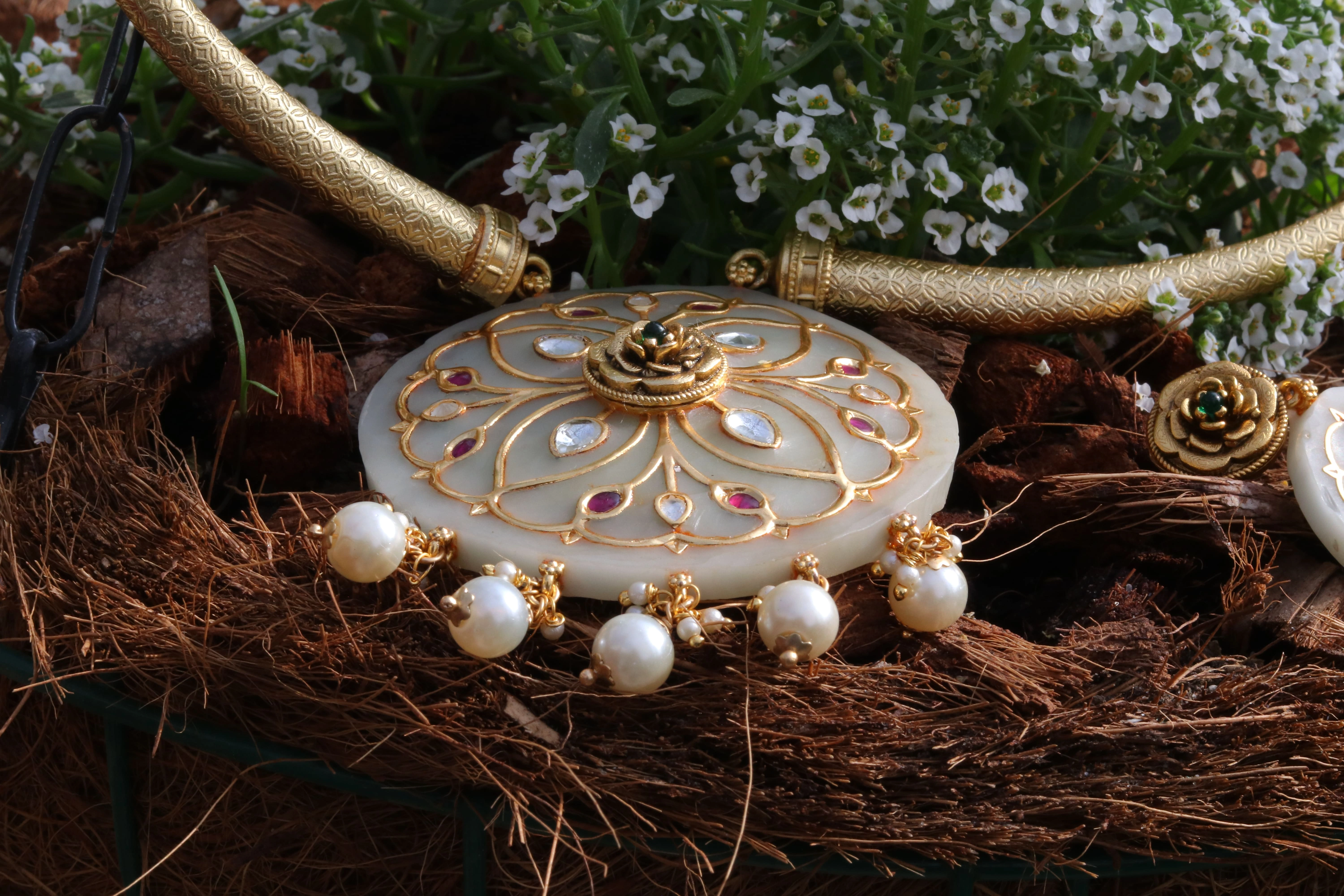 Faux Pearl, Brass Metal, Silver Jadau Work, Stone |